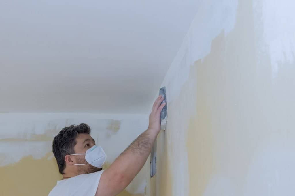 A contractor sanding over a wall